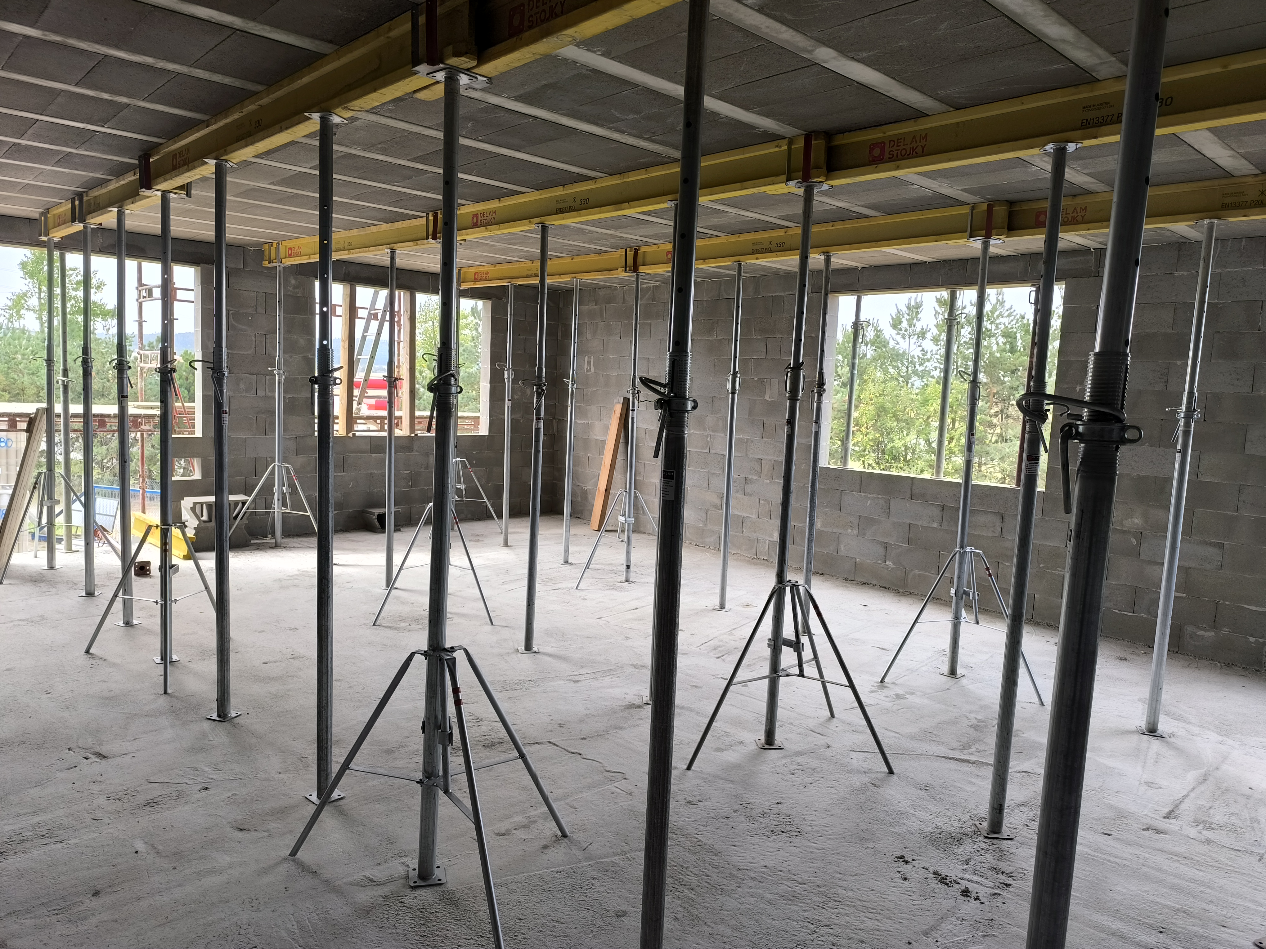 Po odstranění podpěr lze pokračovat s navazujícími stavebními pracemi – zdění příček, instalace a vnitřní rozvody, omítky, podlahové vrstvy apod.