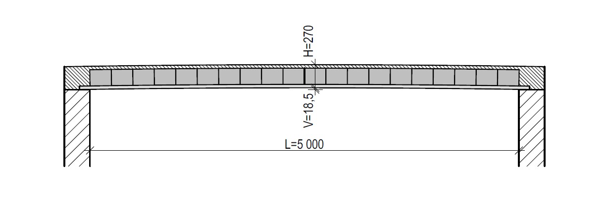 L : H = V, kde L je světlý rozpon místnosti, H je konečná tloušťka stropní konstrukce a V je hodnota vzepětí stropních nosníků.